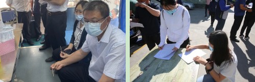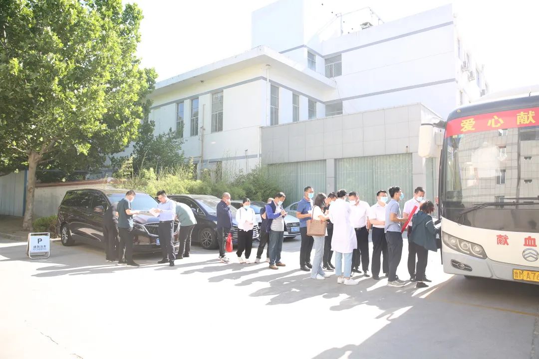集团干部职工在医务人员的指引下,有序进行登记、填表,经量血压、测血型等各项血液检测项目达标合格后,进行采血。