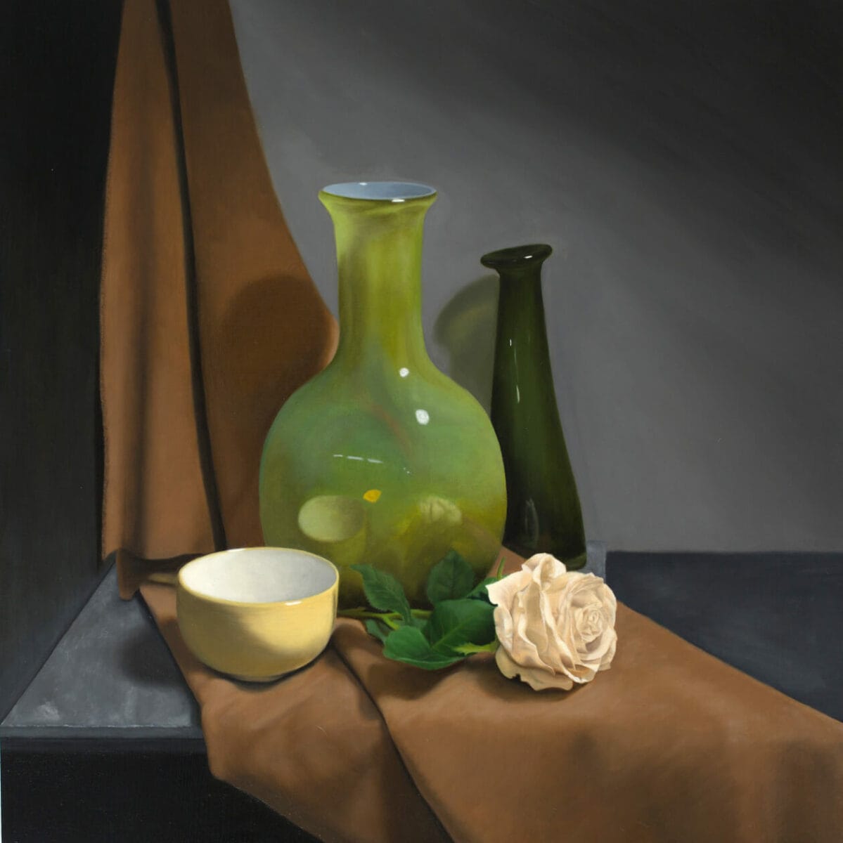 "Green Bottle", oil on panel, by Sue Wrzesinski