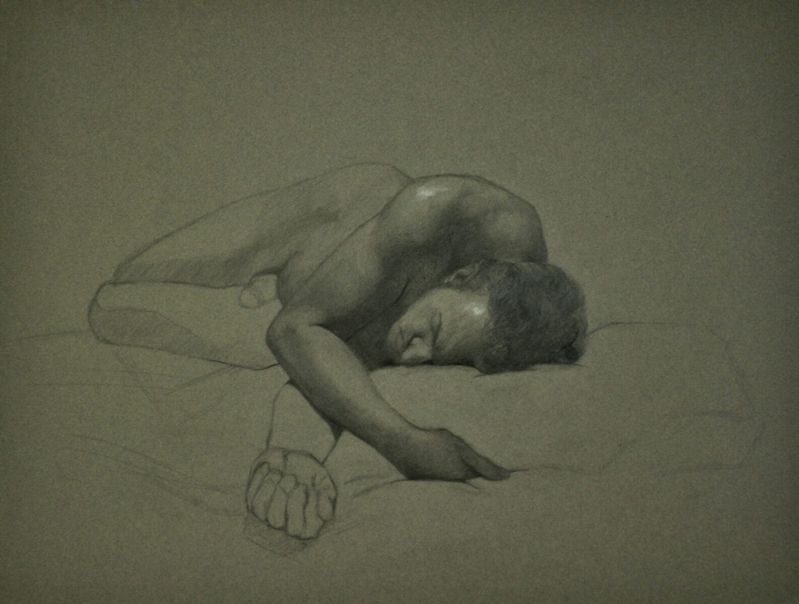 By Alex Bauwens, Graphite and White Chalk on Grey Paper