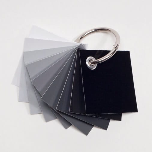 Based on the color notation system of Albert Munsell, this value scale is a useful reference for gauging values in drawing and painting. The 9-Step Value Scale includes nine glossy swatches of neutral grey in equal steps from dark to light. Each swatch is grommeted and detachable from the included metal binding ring.