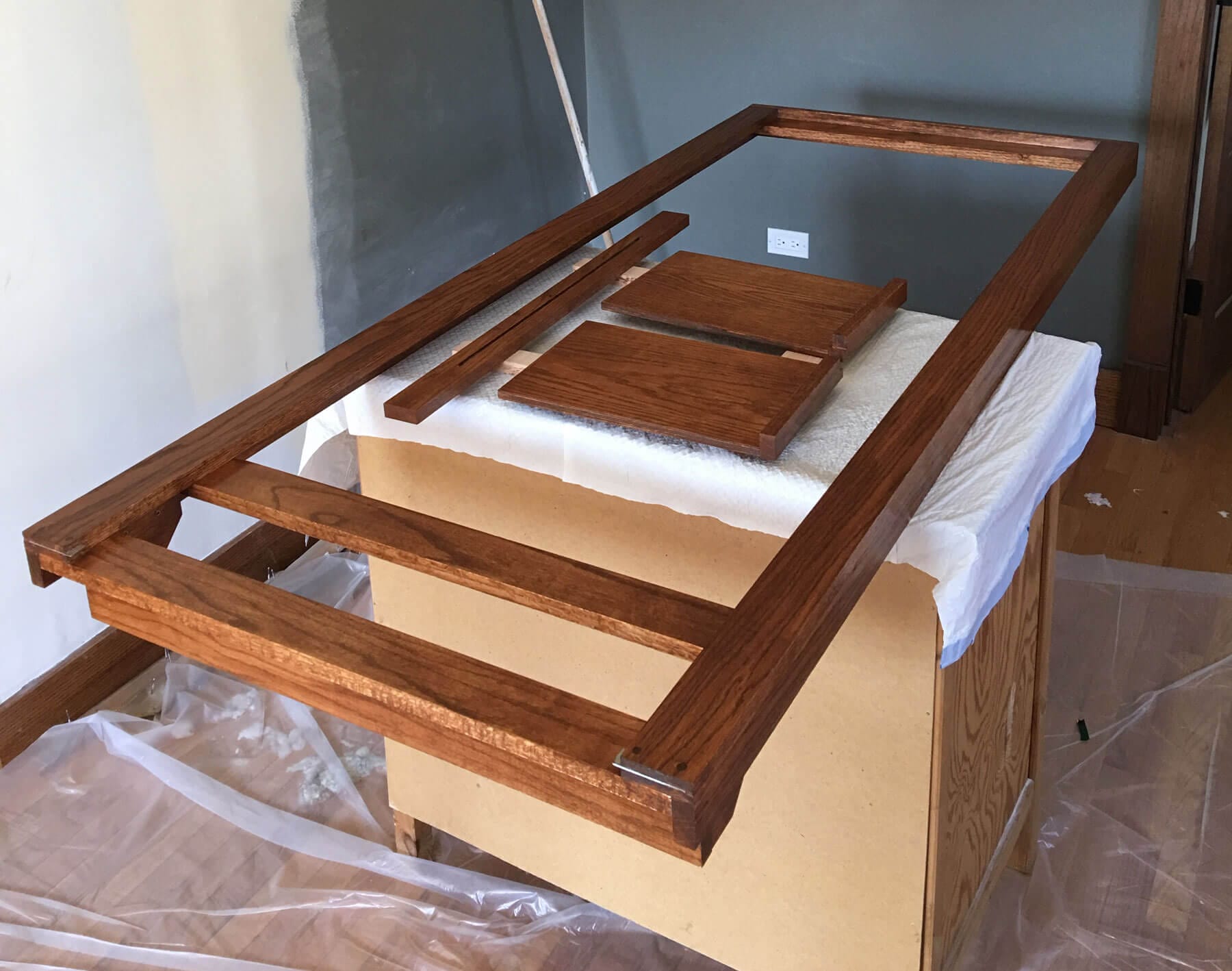 Once the boards are cut and the hardware is procured, it's time to get building, and you'll want to make sure you have plenty of space to work. The longest of the boards is well over 6 feet, so it's not something you can do in a closet. Also, some kind of sturdy table will be a real asset so you can clamp the boards down to something while you glue and nail them together. We made heavy use of our kitchen island for this purpose – just take care that you don't damage your furniture.
