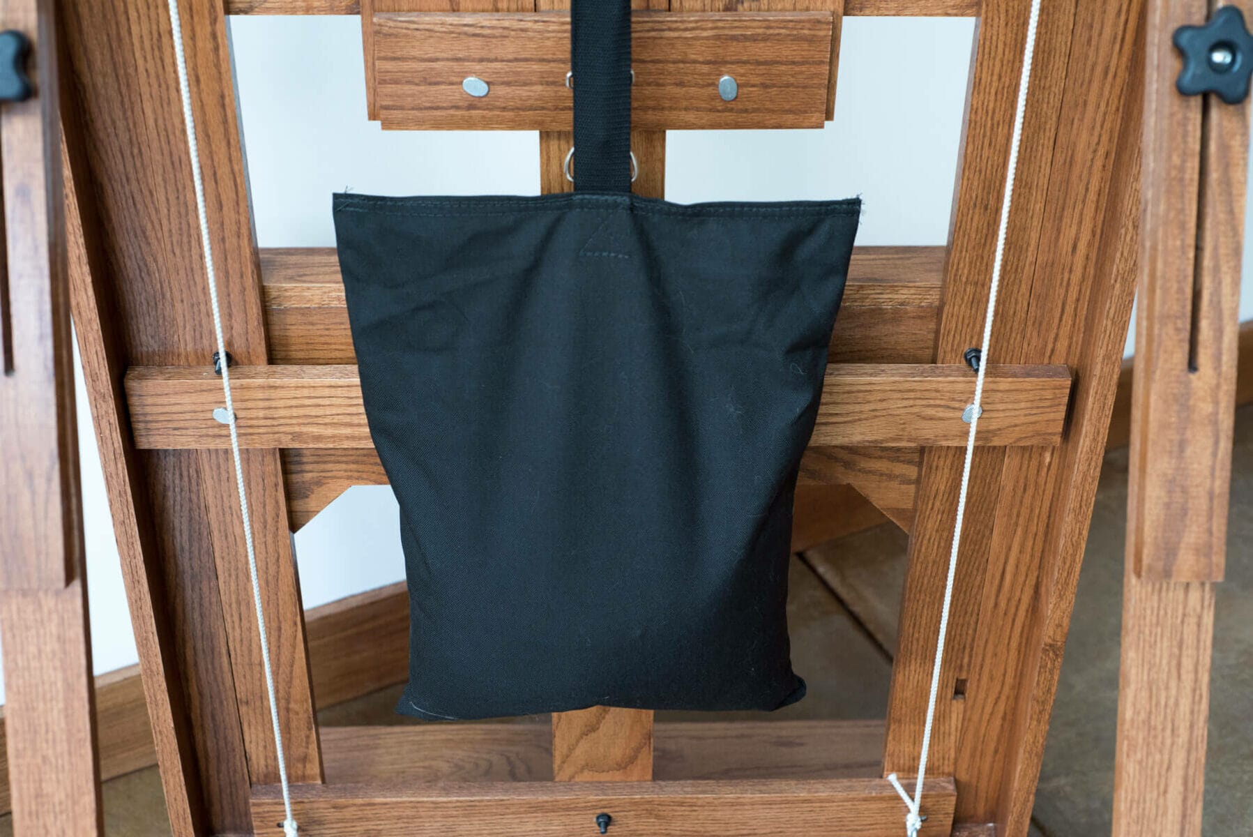 1) I also like the idea and look of your sandbag counterweight. Can you tell us where you purchased them and what you actually put in them as the weight? (sand? other weights?).